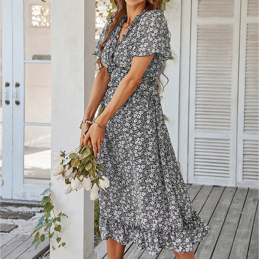Buttoned Frayed Pocket Short Sleeve Denim Dress