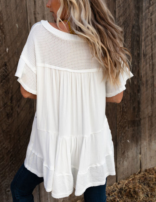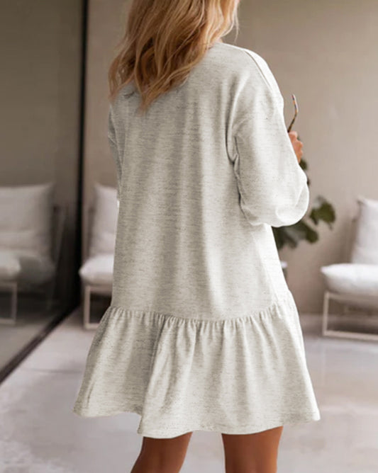 Solid Color Puff Sleeve Ruffle Hem Mini Dress