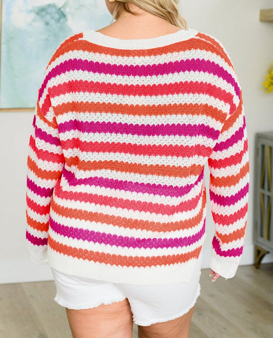 Stripe V Neck Drop Shoulder Plus Size Sweater