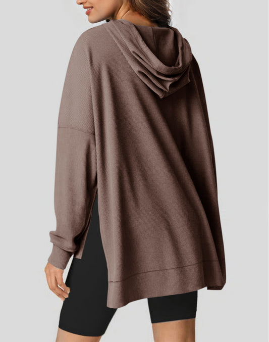 Waffle Knit Fleece Lined High Low Oversized Hoodie