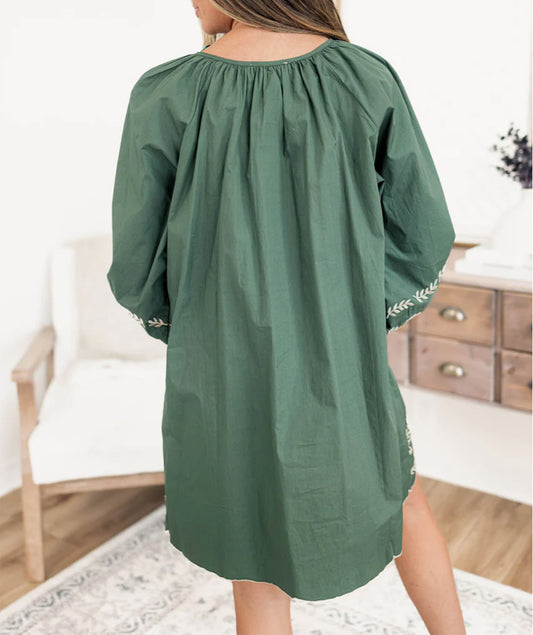 Tie Neck Boho Floral Pattern Puff Sleeve Shift Dress