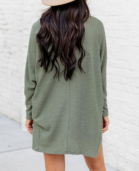 Waffle Knit Open Front Cardigan