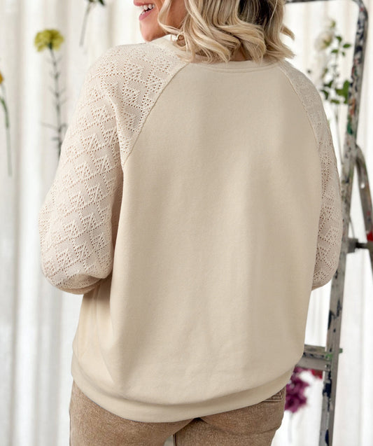 Eyelet Knit Patchwork Raglan Sleeve Pullover Top