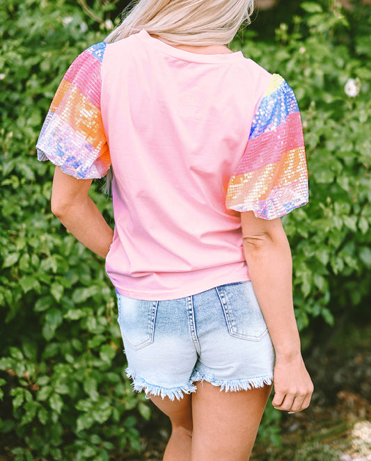 Sequin Colorblock Striped Puff Sleeve Top
