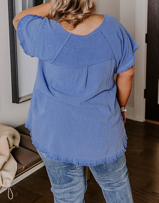 Plus Size Solid Color Short Sleeve Frayed Edge Top