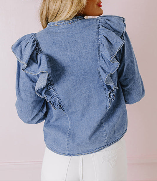 Denim Ruffled Casual Top