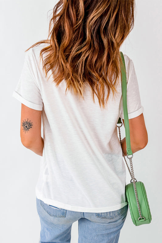 V Neck Printed Ruffle Sleeve Patchwork T-shirt