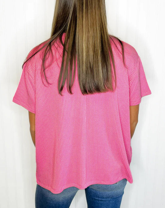 Corded Knit Pocketed Loose Fit T Shirt
