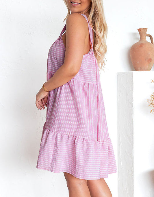 Stripe Pinstriped Ruffled Hem Sleeveless Mini Flared Dress