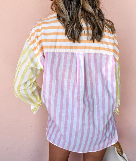 Stripe Contrast Collar Long Sleeve Patchwork Shirt