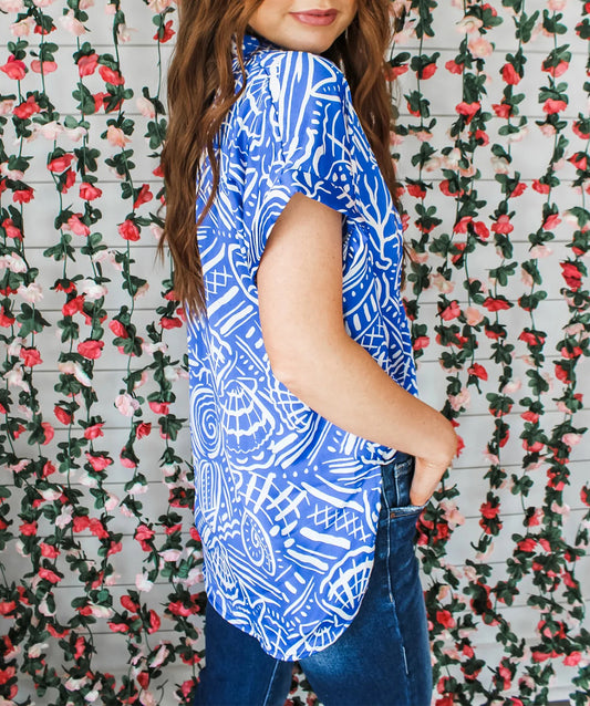 Plus Size Floral Print Notched V Neck Babydoll Blouse