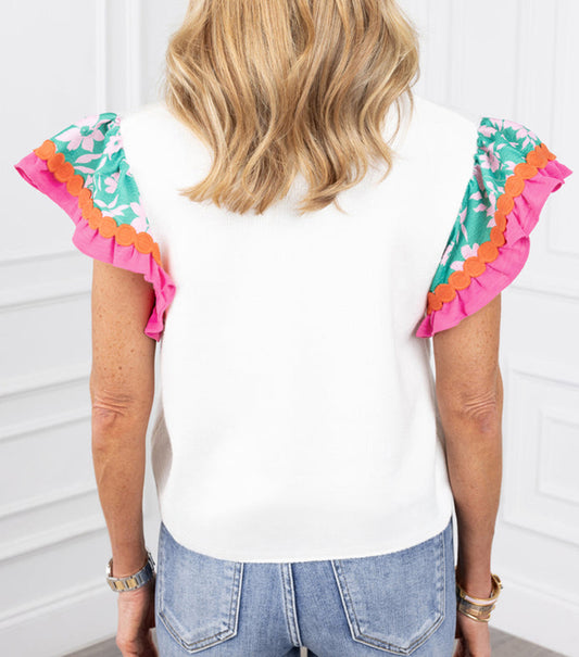 Fuzzy Eyelet Knitted Sweater T-shirt