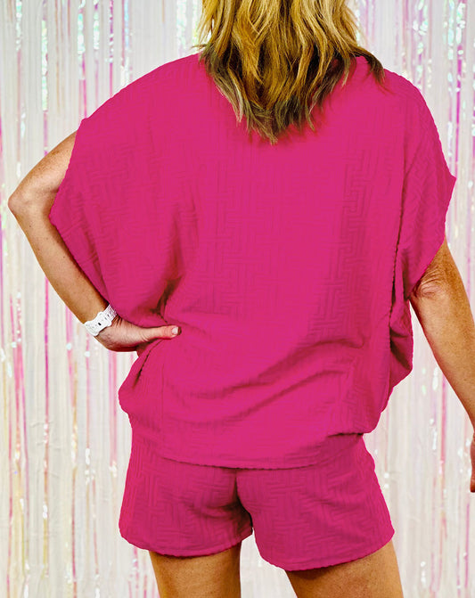 Textured Dolman Sleeve Top and Shorts Plus Size Set