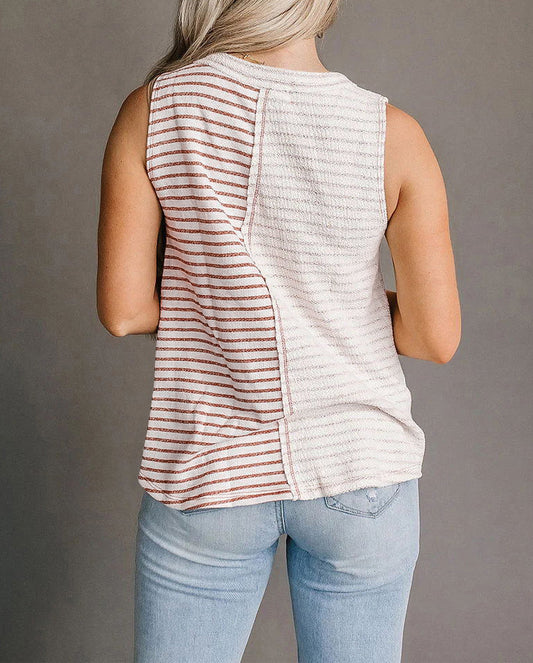 Stripe Contrast Round Neck Sleeveless Slim Top