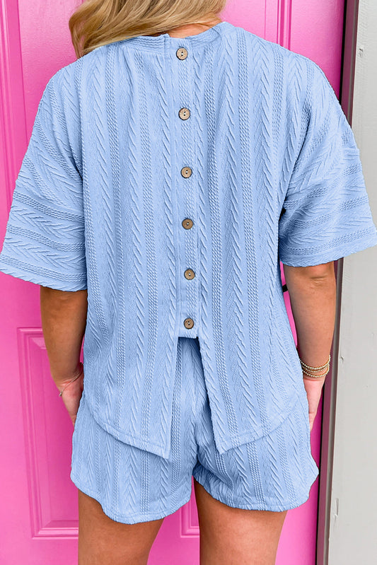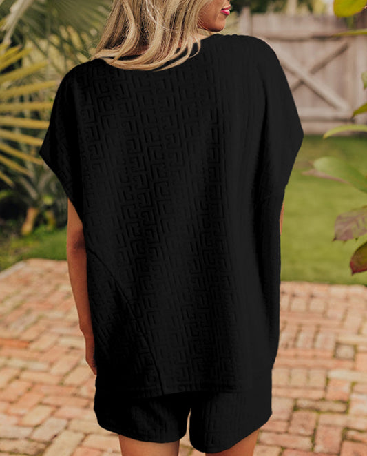 Solid Geometric Textured Loose Two Piece Shorts Set
