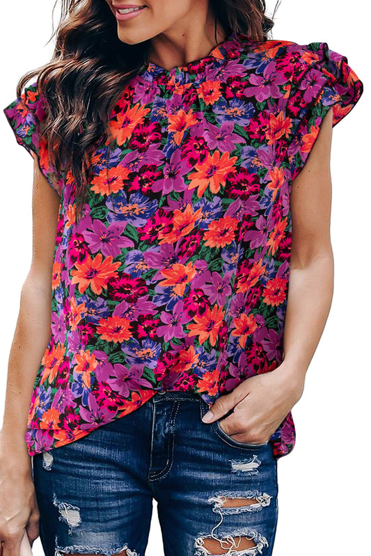 Floral Print Tiered Ruffled Sleeve Blouse
