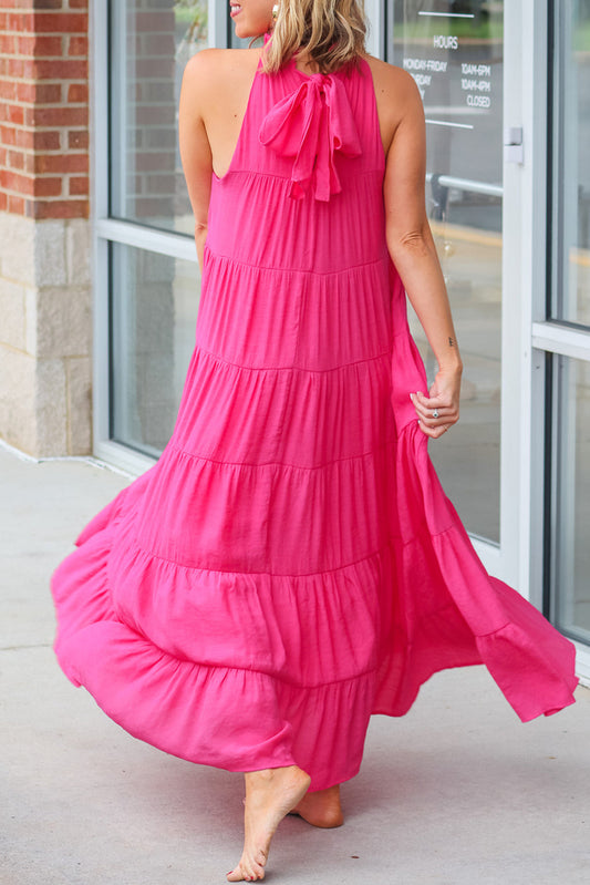 High Frilled Neck Tiered Sleeveless Maxi Dress