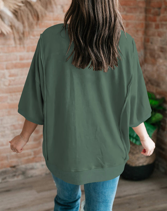Exposed Seam Chest Pocket Split Loose T Shirt