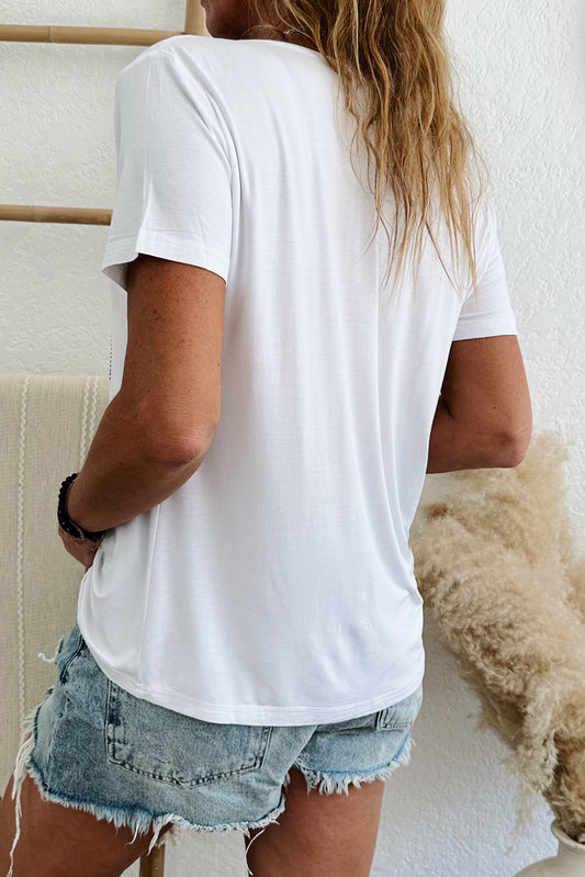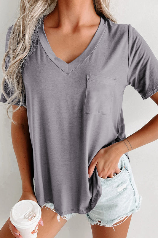 V Neck Pocketed Rounded Hem Tee