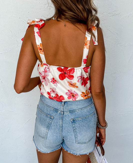Floral Button Wrap Sleeveless Bodysuit