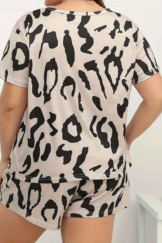 Simply Taupe Plus Size Leopard Tee Shorts Lounge Set