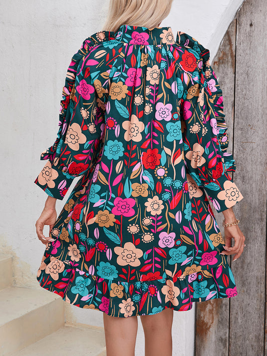 Floral Print Puff Sleeve Ruffled Mini Dress