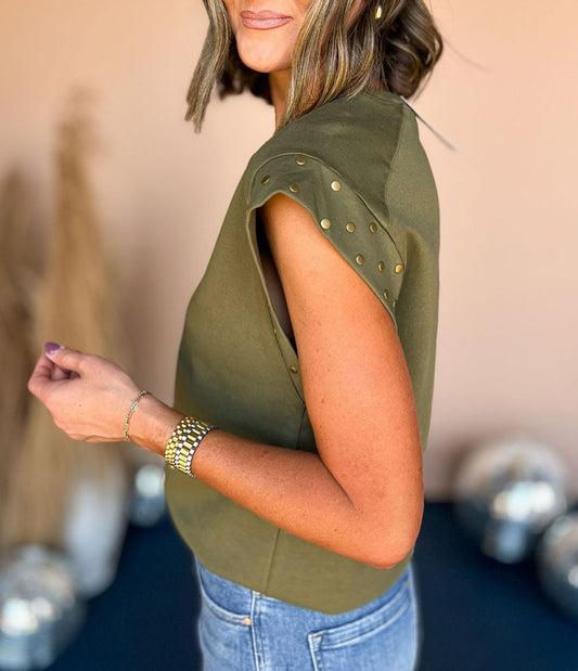 Rhinestone Stars Stripes Graphic Studded Sleeve Tee