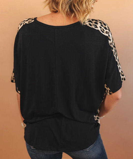 Western Boots Slogan Print Leopard Patchwork T Shirt