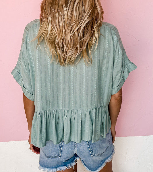 Textured Ruffled Hem Short Sleeve Blouse