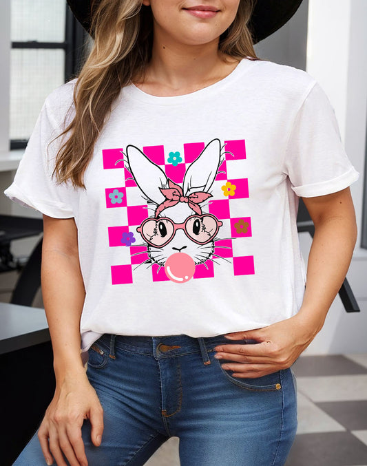 Bubblegum Easter Rabbit Checker Flower Graphic Plus Tee