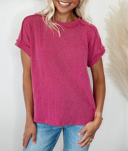 Textured Knit Exposed Stitching T-shirt