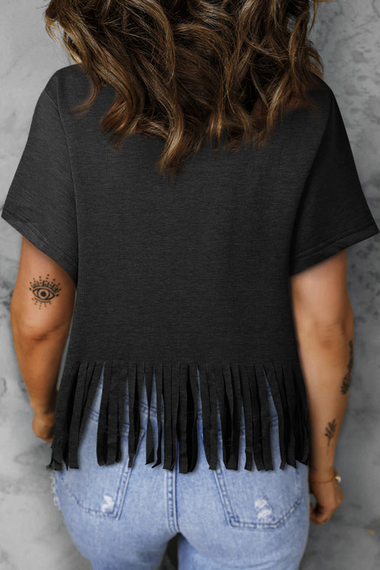 MAMA Hot Mess Fringed Hem V Neck T Shirt