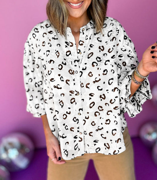 Leopard Print Button up Ruffled Sleeve Shirt