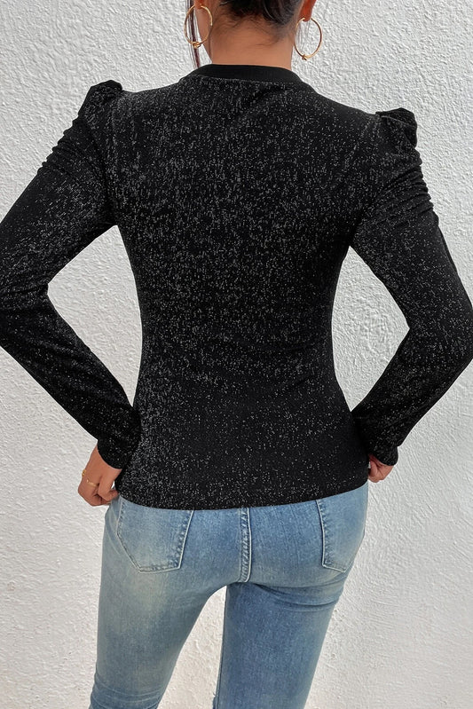 Gigot Sleeve Metallic Knit Slim Fit Top