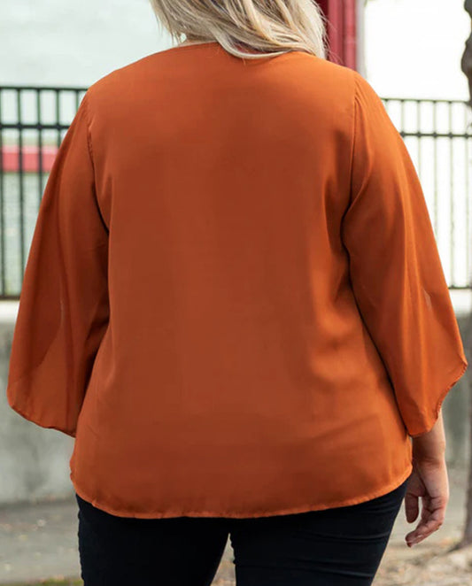 Plus Size Solid Wrapped Ruffled Sleeve V Neck Blouse