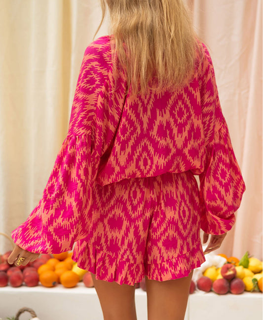 Bow Print Half Sleeve Shirt and Shorts Pajamas Set