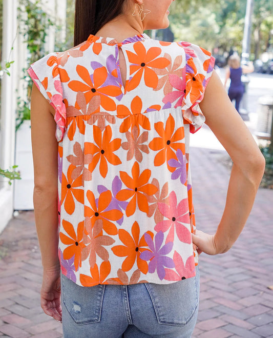 Abstract Printed Button Back Vest and Wide Leg Pants Set
