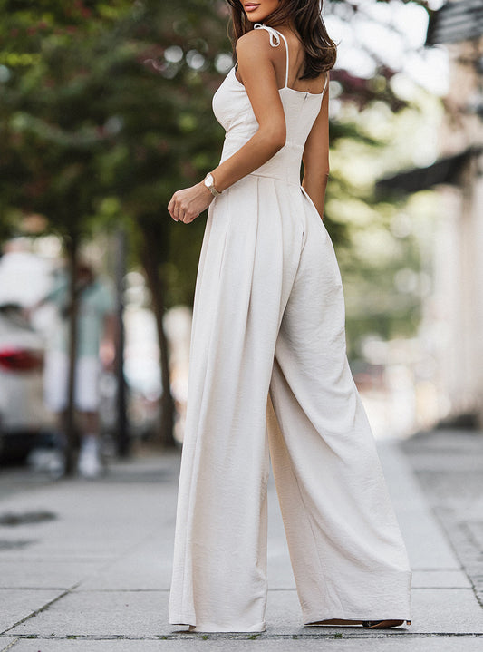 Spaghetti Straps Pleated High Waist Wide Leg Jumpsuit