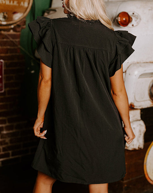 Ruffle Sleeve V Neck Frilled Shift Dress