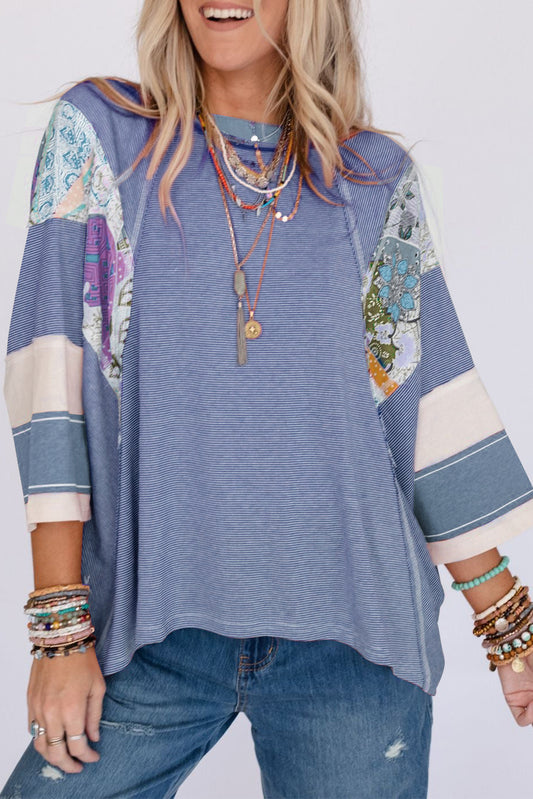 Clay Western Geometric Print Bubble Sleeve Frilled Neck Blouse