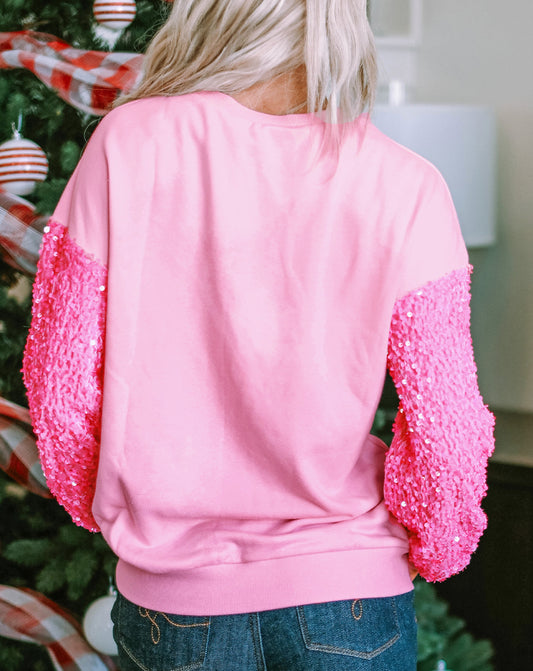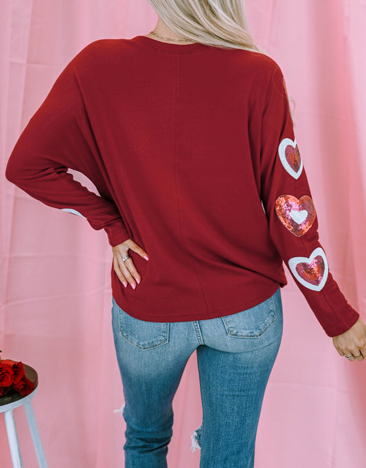 Sequined Heart Printed Sleeves Valentine Fashion Top