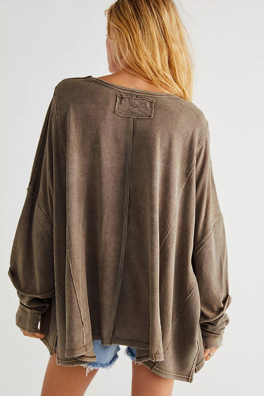 Exposed Seam Thumbhole Drop Shoulder Loose Sweatshirt