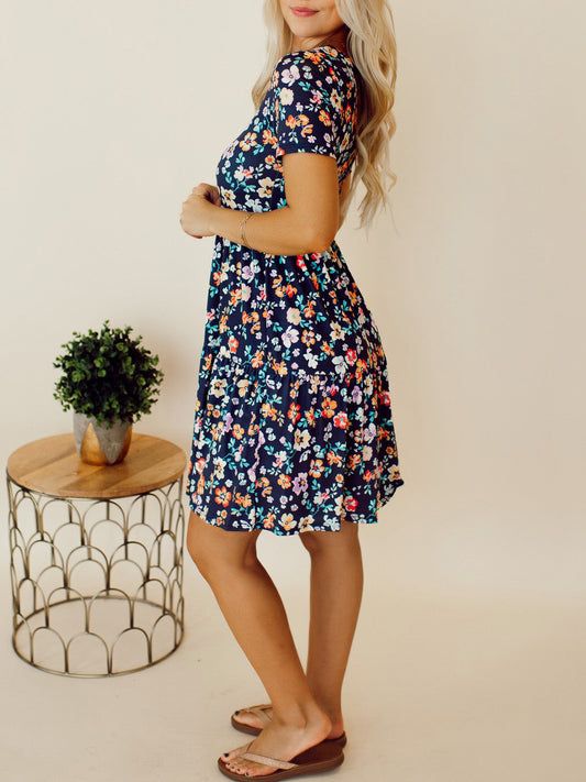 Floral Frilled Collar Ruffled Short Sleeve Blouse