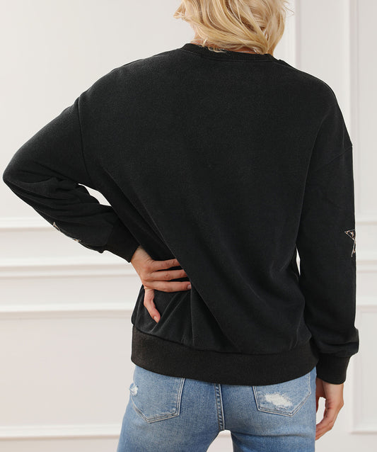 Leopard Star Patched Drop Shoulder Sweatshirt