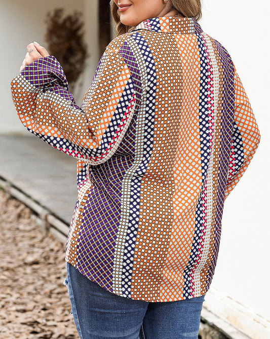 Plus Size Mix Dotted Patchwork Button up Shirt