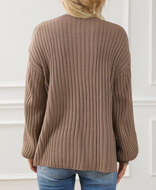 Floral Colorblock Bubble Sleeve Ribbed Knit Top
