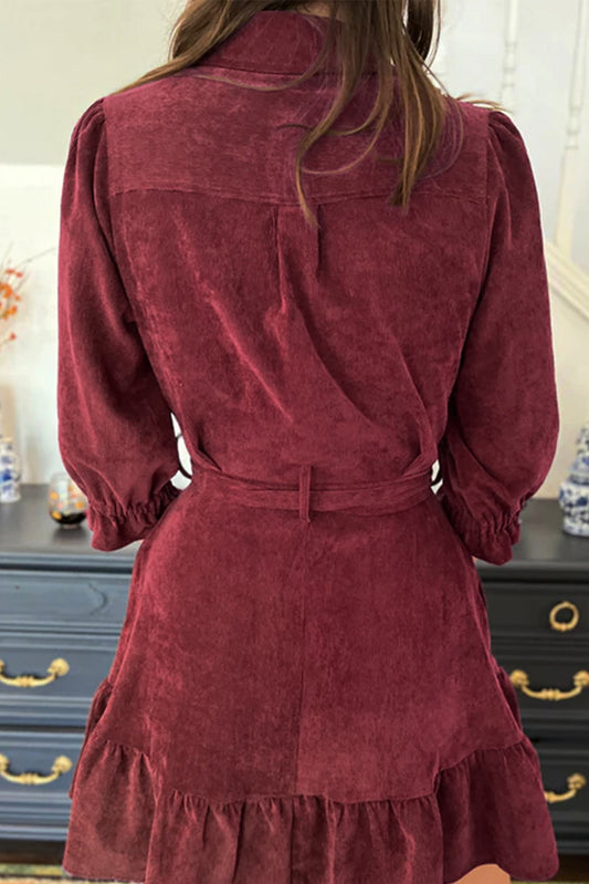 Floral Print Lantern Sleeve Belted Shirt Dress