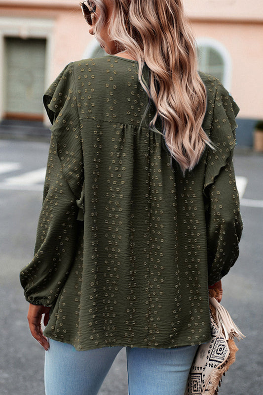 Plus Lace Swiss Dot Ruffle Long Sleeve Top