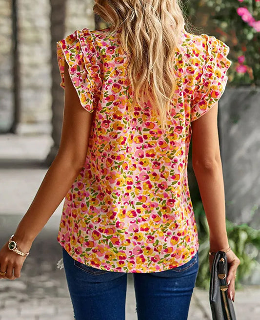 Ribbed Knit Ruffle Flared Long Sleeve Top