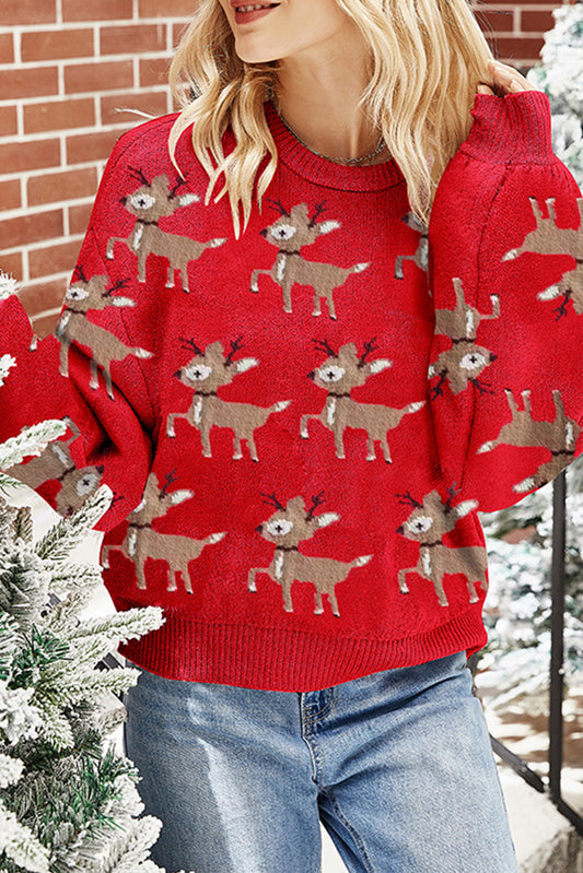 Christmas Reindeer Pattern Drop Shoulder Sweater